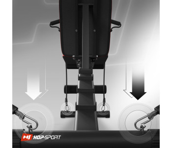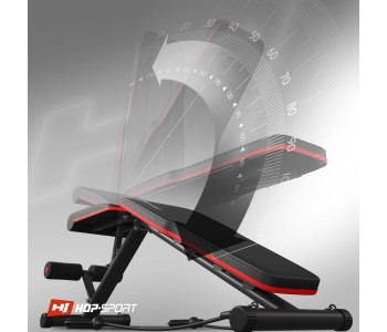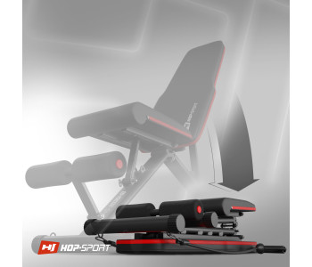 Лавка 2030HB від Hop-Sport - універсальна і функціональна окремо стояча лавка. Регульовані спинка і сидіння, а також фіксатор для ніг, дозволяють тренувати різні групи м'язів. У комплект входять еспандери для проведення розминки і ще більш ефективних тренувань. Додатковою перевагою даної моделі є можливість складати її після тренування.