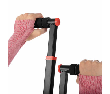Вертикальні рухливі ручки мають широкий діапазон регулювання: від 160 до 183см, тому займатися на тренажері для скелелазіння може кожен, незалежно від фізичної підготовки! Регулювання ручок також дозволяє регулювати інтенсивність тренувань відповідно до ваших потреб. Чим вище розташовані ручки, тим більший діапазон виконуваних рухів, що, в свою чергу, вплине на інтенсивність вправ. Техніка хвата також важлива - ви можете тренуватися як нижнім, так і верхнім хватом, таким чином залучаючи інші групи м'язів кисті, рук, спини і навіть пресу.