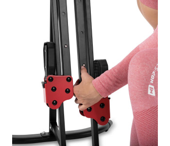 Вертикальний степпер, також відомий як тренажер для скелелазіння, від бренду Hop-Sport. Це тренажер, за допомогою якого можна проводити комплексне тренування як верхньої, так і нижньої частин тіла. Симулятор сходження допоможе вам зміцнити та сформувати м'язи рук, ніг, пресу та сідниць, а також задіяти глибокі м'язи, що відповідають за стабілізацію тіла. Чіткий дисплей тренувального комп'ютера дозволить контролювати, зокрема: такі параметри, як час, кількість кроків та кількість спалених калорій. Два типи ручок: регульовані верхні ручки і статичні бічні - дадуть вам можливість експериментувати з різними видами діяльності. Від симуляції скелелазіння, яка залучає все тіло до кардіотренування, до інтенсивних тренувань, зосереджених на нижніх групах м'язів, схожих на тренування на степпері. Міцна сталева конструкція, заснована на широко розташованих основах, оснащених спеціальними присосками, забезпечує максимальну безпеку навіть під час надзвичайно динамічних тренувань.