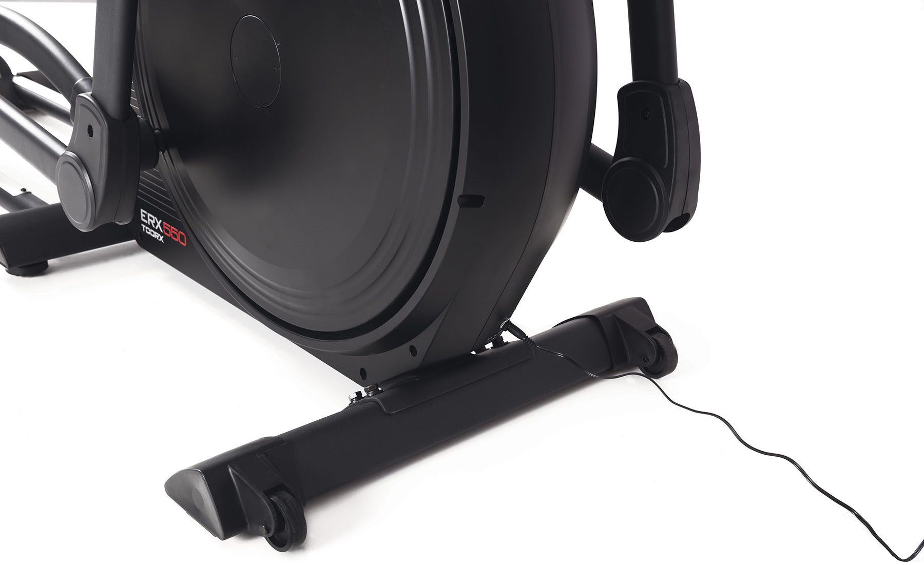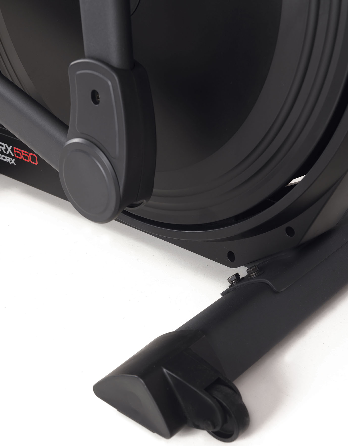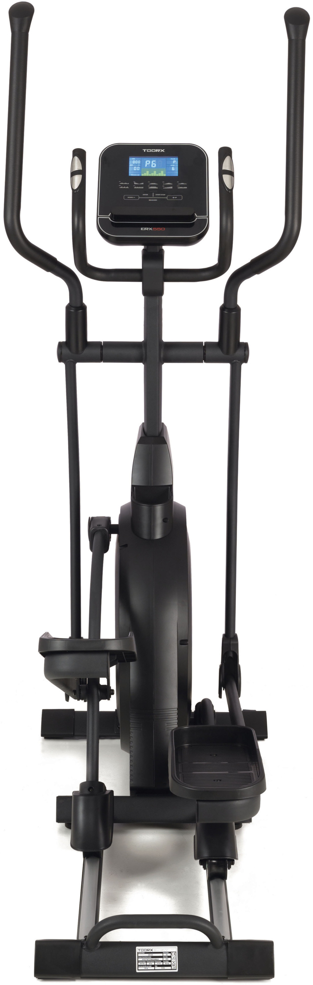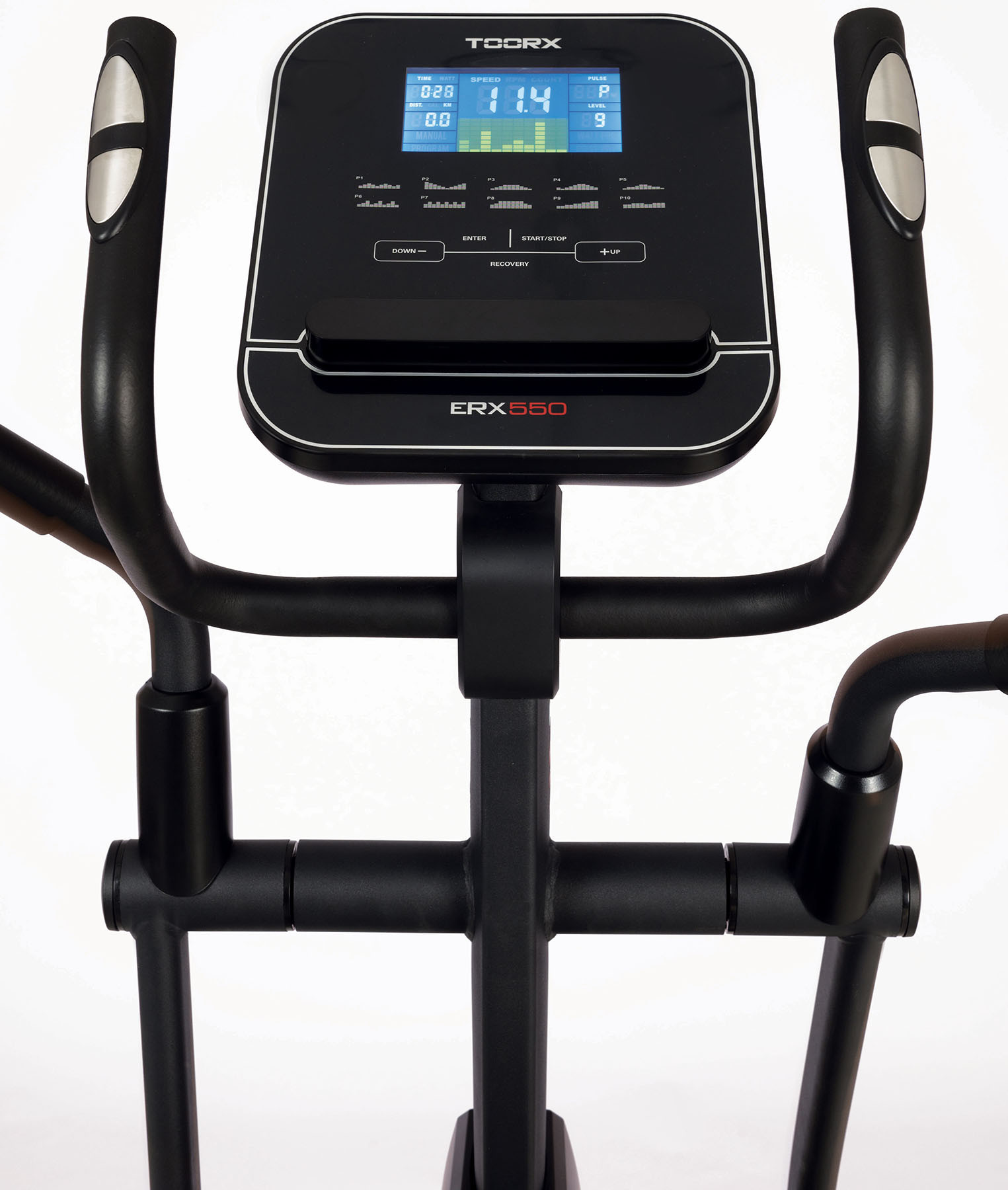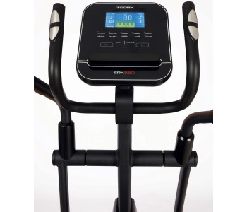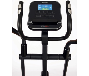 Орбітрек Toorx Elliptical ERX 550 (ERX-550) із преміальної лінійки Chrono Line італійського виробника Garlando S.p.A. призначений для інтенсивного кардіотренування в домашніх умовах. Тренажер має 24 рівні навантаження, що регулюються за допомогою сучасного комп'ютера. 16-кілограмовий маховик створює чудову плавність ходу, знижуючи навантаження на суглоби та мінімізуючи ризик отримання травми в процесі занять. Орбітрек розрахований на вагу до 130 кг, а довжина кроку 51 см припаде до вподоби навіть найвибагливішим користувачам. Вбудований приймач для бездротового датчика вимірювання пульсу буде доречним під час тренування по одній із чотирьох пульсозалежних програм. Консоль тренажера має підставку для смартфона/планшета та підтримує Bluetooth для інтеграції з популярними додатками Kinomap і Zwift, які перетворять монотонне тренування в захоплюючий процес.