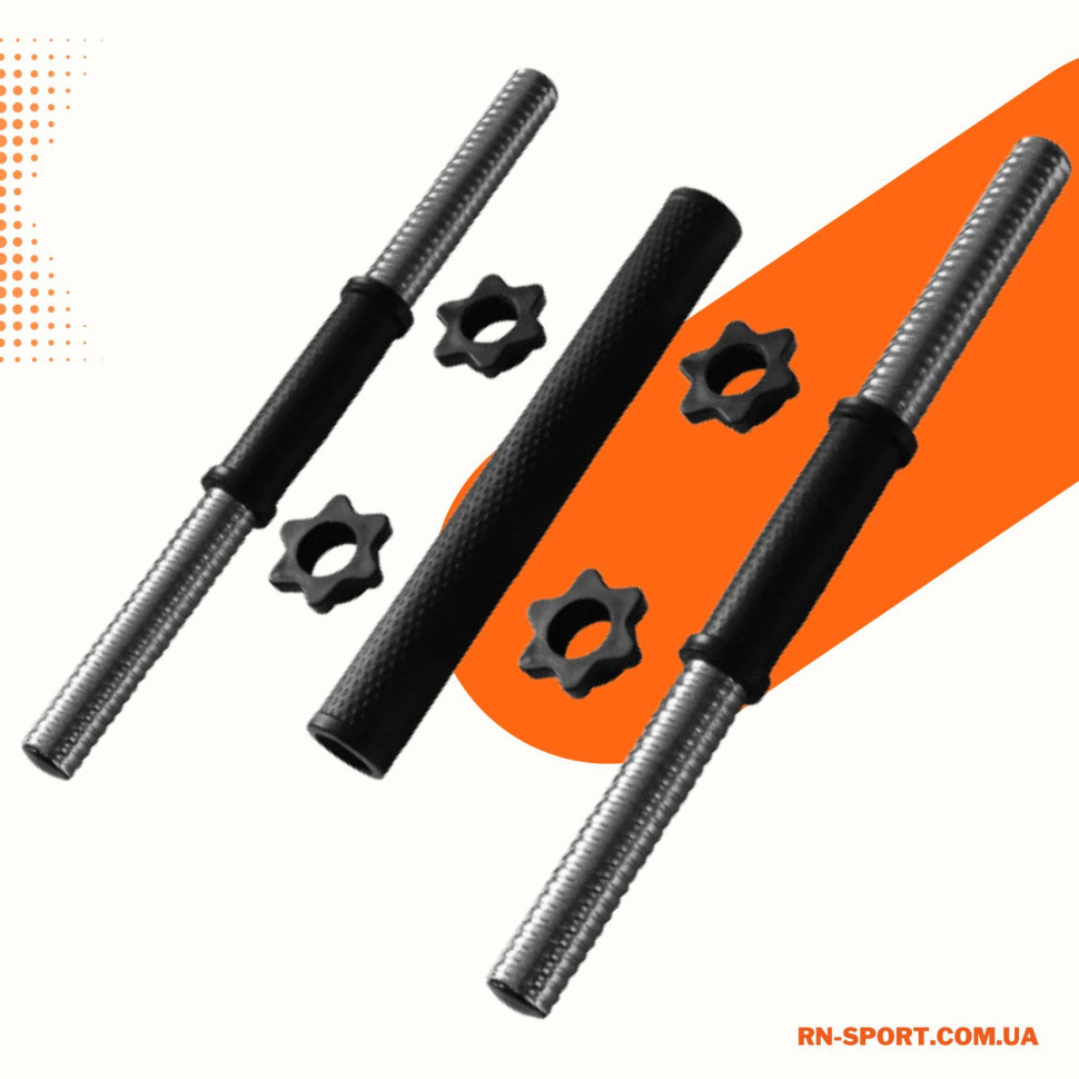 Перехідник під штангу + грифи гантельні металопластикові 45 см - 30 мм - 2шт Характеристики товару Вид замка: Гвинтовий Форма грифа: Пряма Діаметр грифа: 30 мм Довжина грифа: 45 см Загальна довжина грифів і перехідника: 100-110 см В комплекті чотири гайки + перехідник для нудьгування грифів під штангу Основний колір : Чорний Грифи металеві