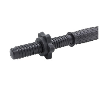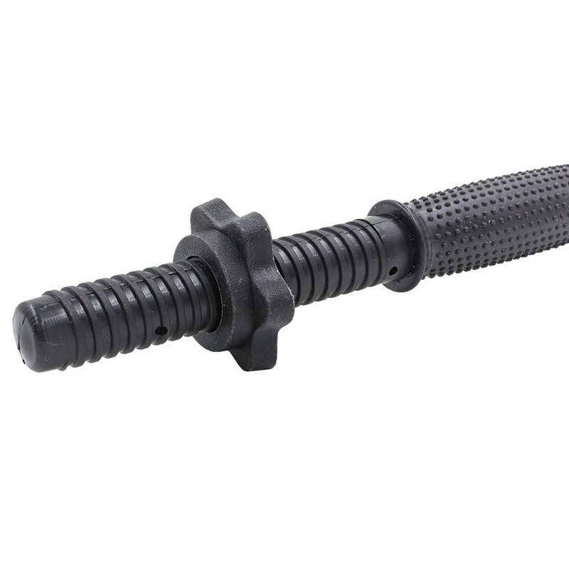 Матеріал: пластик, гума. Довжина: 42 см. Діаметр: 25 мм. Колір чорний. Призначення: для фітнесу та тренувань з обтяженнями. Опис Цей гриф виготовляється методом лиття під тиском із високоміцного пластику, стійкого до ударів та механічних навантажень. Для фіксації на ньому млинців є гвинтові замки, так звані гайки Вейдера, які надійно їх утримують і в той же час дозволяють швидко додати/зменшити вагу. Обгумована поверхня та рифлена рукоять забезпечують надійний хват і безпеку тренувань. Гриф може використовуватися з будь-якими млинцями відповідного діаметра. Переваги: Підходить для тренувань спортсменів із будь-яким рівнем фізичної підготовки. Приємна на дотик, нековзна рукоять, що забезпечує комфорт та безпеку. Може використовуватись у спортзалах різного типу – комерційні, аматорські, домашні. Навантаження до 50 кг.