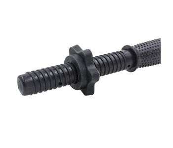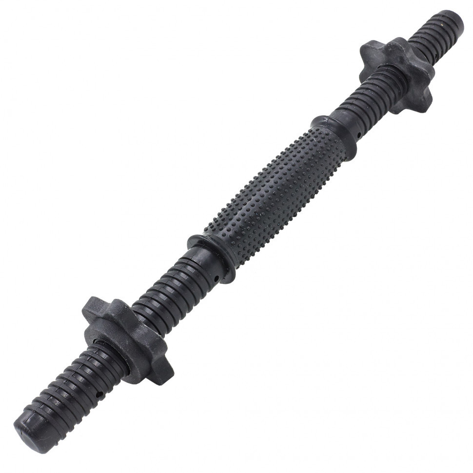 Матеріал: пластик, гума. Довжина: 46 см. Діаметр: 25 мм. Колір чорний. Призначення: для фітнесу та тренувань з обтяженнями. Опис Цей гриф виготовляється методом лиття під тиском із високоміцного пластику, стійкого до ударів та механічних навантажень. Для фіксації на ньому млинців є гвинтові замки, так звані гайки Вейдера, які надійно їх утримують і в той же час дозволяють швидко додати/зменшити вагу. Обгумована поверхня та рифлена рукоять забезпечують надійний хват і безпеку тренувань. Гриф може використовуватися з будь-якими млинцями відповідного діаметра. Переваги: Підходить для тренувань спортсменів із будь-яким рівнем фізичної підготовки. Приємна на дотик, нековзна рукоять, що забезпечує комфорт та безпеку. Може використовуватись у спортзалах різного типу – комерційні, аматорські, домашні. Навантаження до 50 кг.