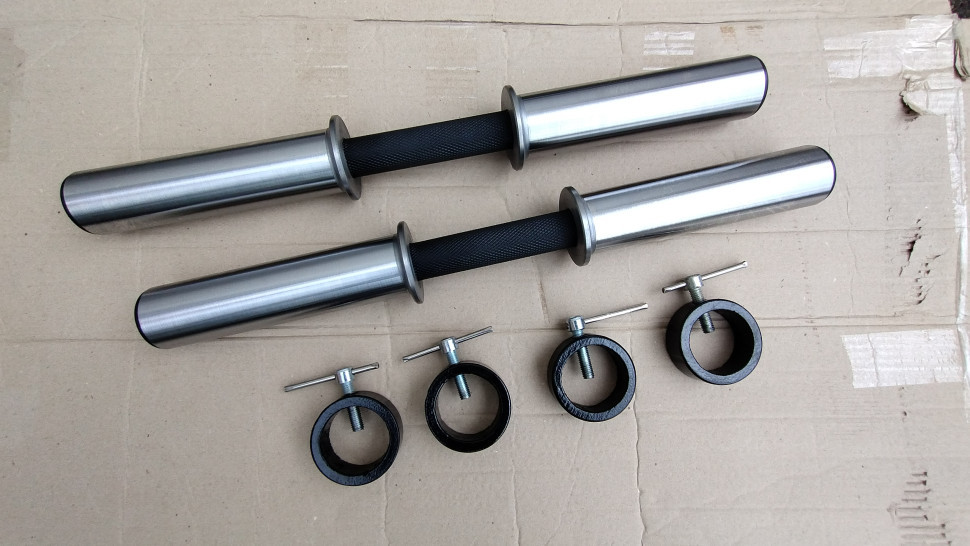 Комплектація набору: 2 шт. - Олімпійський гантельний гриф 54 см - 50 мм. Металевий 20 дисків по 5 кг, 4 диски по 2,5 кг 2х гвинтових затискачів Загальна вага снаряда 124 кг Характеристики гантелі: Виробник: RN-Sport (Україна) Ø21 см; товщина 2.2 см; 2.5 кг - Ø16 см, товщина 2.2 см Покриття диска: Гума Номінал ваги вказаний на кожному диску Гриф гантельний 44 см, металевий Діаметр склянок грифа 50 мм У комплекті 2 затискних фіксатора Насічка проти ковзання рук Діаметр грифа 28 мм