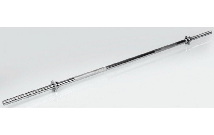 Гриф для прямої штанги. хром (150 см, d-28 мм, 7 кг, 2 гайки) Сталевий хромований гриф довжиною 150 см підійде для домашнього використання. Хромоване покриття, насічка для рук у потрібному місці роблять заняття зі штангою максимально комфортним та приємним. Міцний метал тримає навантаження до 100 кг, а затискні баранчики із гумовими фіксаторами щільно притискають диски для безпечного заняття. Характеристики Довжина посадкового місця для млинців (навісної зони): 25 см Довжина робочої зони (хвату): 100 см Обмеження навантаження: 130 кг У комплекті гриф + 2 затискачі Насічка для рук проти ковзання