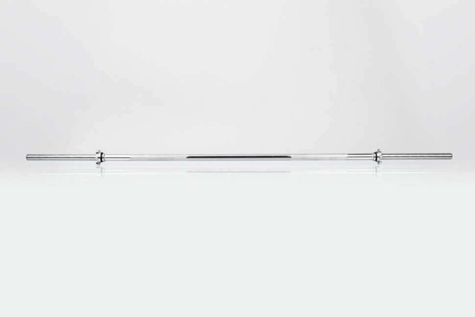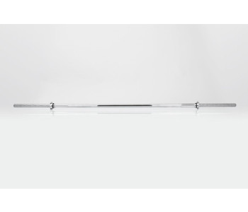 Гриф для прямої штанги. хром (180 см, d-28 мм, кг, гайки) Довжина посадкового місця для млинців (навісна зона): 25 мм; Довжина робочої зони (хвату): 120 см; Обмеження навантаження: 140 кг. Хромування. Повністю сталевий. 2 гайки для затиску млинців. Насікання для зручнішого хвату. Гриф для штанги є найчастіше використовуваним елементом спортивного інвентарю при заняттях КросФіт-ом, важкою атлетикою або бодібілдингом. Ідеальний варіант для використання штанги, тому що робоча зона грифу становить 120 см. Насікання для рук перешкоджає ковзанню при заняттях, а затискні, металеві баранчики щільно притискають диски.