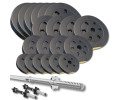 Набір металевих штанг та гантель Quatro-GRIP від RN-Sport. Млинці виготовлені із металу. Після обробки, диски розігрівають у печі до температури 180-200 градусів, забарвлюють міцною фарбою і знову запікають до формування міцної кірки. Завдяки дискам вагою 1.25 кг можна тренуватися з мінімальним кроком ваги. Зручності у використанні додає металеві хромовані грифи з насічкою проти ковзання рук та двома затискними гайками, які мають гумові втулки для щільної та надійної фіксації млинців. За допомогою хвата quatro диски 5 кг можна використовувати як окремий снаряд для різних вправ (підйоми млинця для зміцнення плечей, обертання млинця навколо корпусу для зміцнення м'язів живота (прес і косі м'язи), жим із-за голови для опрацювання трицепса, вправи для передпліч. .. ) Крім вправ, диски служать додатковою вагою для штанги та гантелі. Комплектація: Диск металевий 5 кг x 2шт. Диск металевий 2,5 кг х 4шт. Диск металевий 1,25 кг х 8шт. Гриф для штанги прямий, хромований 150 см, 2 затискні гайки Гриф гантельний , хромований 40 см 2 шт, гайки затискні 4 шт Гарантія 5 років Розміри дисків кг: 1.25 кг - ф12 см, товщина 2 см;2.5 кг - ф 16 см, товщина 2 см, 5 кг - ф22 см, товщина 3 см Діаметр навісної зони грифів 25 мм Діаметр посадкового місця на дисках - 26,5 мм Можна змінити комплектацію згідно Ваших побажань!