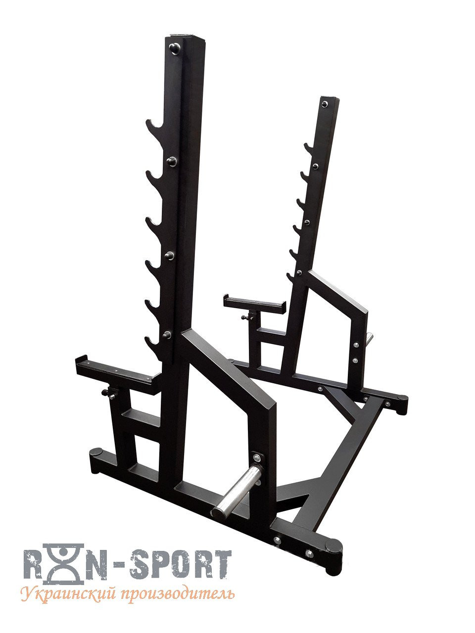 Багаторівневі стійки під штангу Стійка для присідань зі страховкою, підходить для будь-якого зростання людини. Товщина гаків під гриф 6мм. Д*Ш*В: 160*122*176 см. Відстань між упорами, кут нахилу, колір фарбування тощо. параметри - можуть бути змінені за бажанням клієнта. Тип стояків: комбіновані Профіль рами 80х60 Висота: 176 см Ширина: макс. 122 см Ідеально підходить під гриф довжиною 220 см. Під гриф 180 см також підходить, але трохи навісна зона лягає на стійки. Довжина: 100см Вага: 70 кг Максимальне навантаження: 300 кг Матеріал: сталь Оздоблення: порошкове фарбування