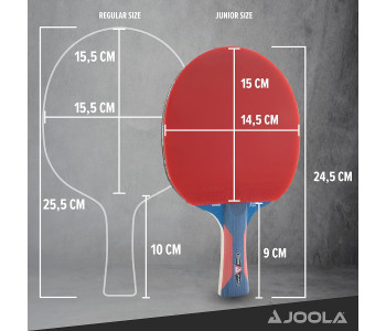 У цій ракетці з короткою ручкою використовується технологія Ergo Grip від Joola, що забезпечує зручний хват ручки ракетки для молодих гравців. Завдяки накладці створеної за технологією Pro Friction Vizon створюється баланс між обертанням і контролем м'яча.