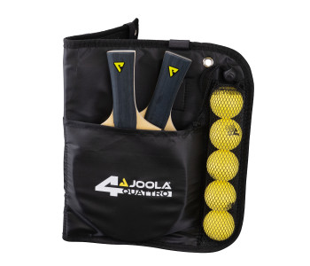 Сімейний комплект Joola Quattro — це все необхідне для яскравих та активних ігор у настільний теніс, зібране у зручній сумці, яку можна прикріпити прямо до столу. У наборі — 4 ракетки з ергономічною ручкою Ergo Grip та технологією Selected Plywood для відмінного контролю м’яча, а також 10 м’ячів Joola Advanced з рівномірним відскоком і довговічністю.