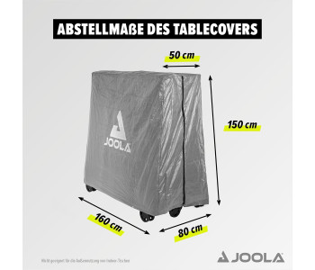 Чохол для тенісного столу Joola (артикул 19900) має водозахисне покриття. Має легку і швидку збірку завдяки шнурам, які можна закріпити по краях.