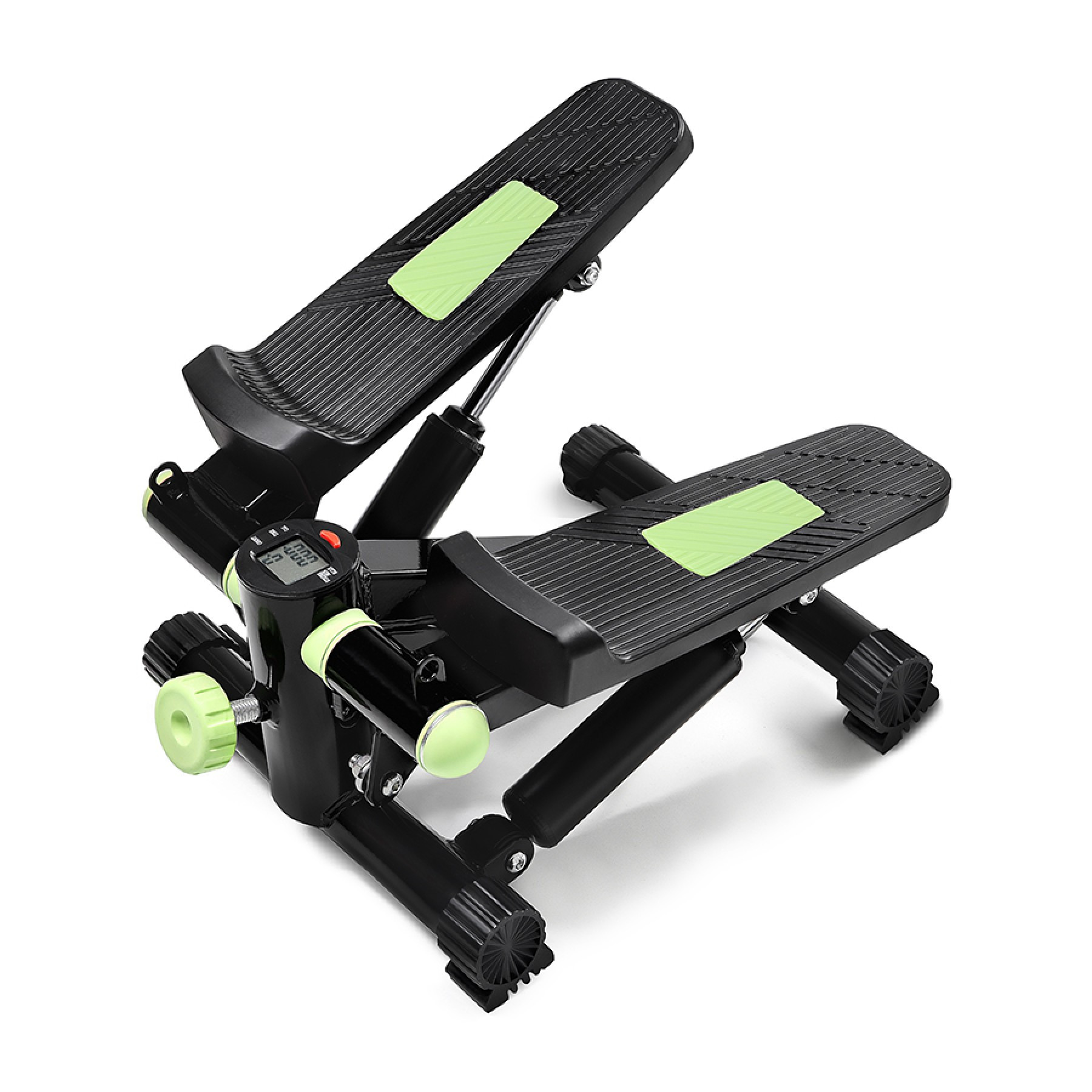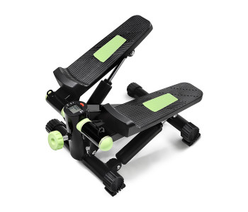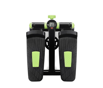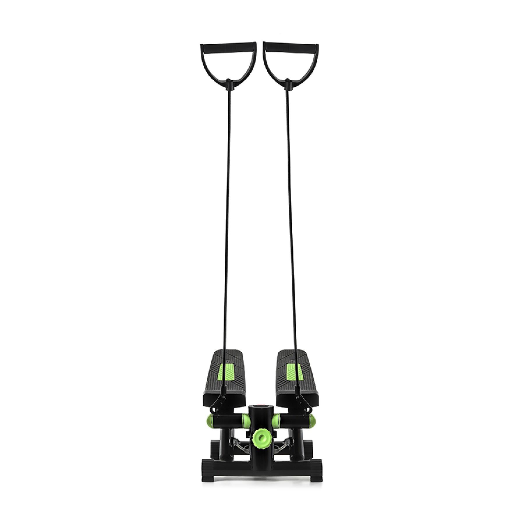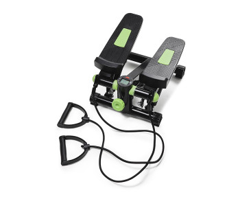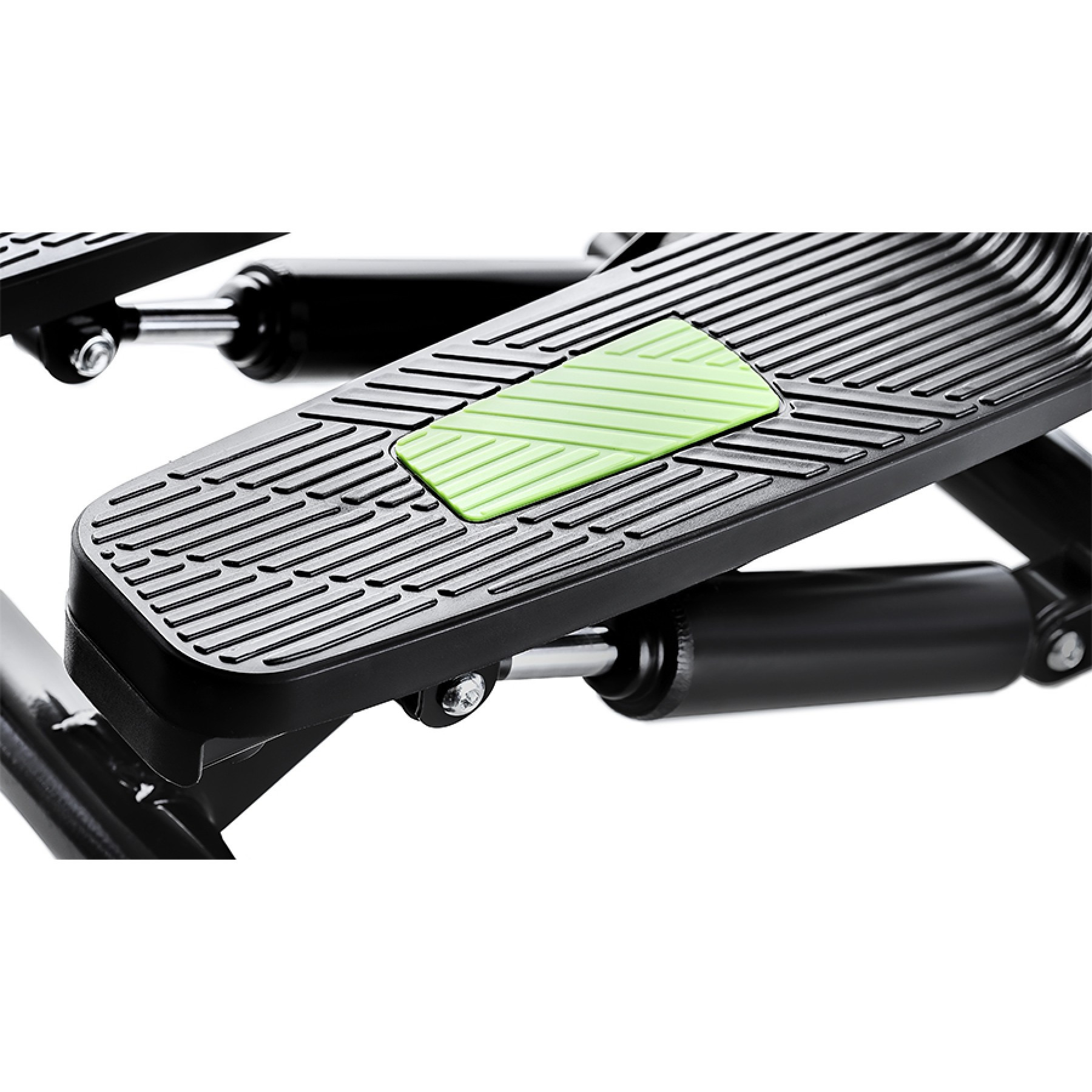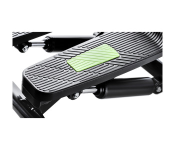 Максимальне рекомендоване навантаження на стальну раму складає 120 кг. Користувач також зможе змінювати силу опору шляхом зміни глибини кроків, для цього на передній частині тренажера розташований регулятор. Попри невеликі розміри, конструкція степпера є стійкою завдяки спеціальним профільованим ніжкам. На самих платформах розташовані гумові вставки, що вбережуть від випадкового зісковзування стоп з поверхні. Додатково в комплекті присутні ручні еспандери, що кріпляться до рами та дають змогу опрацювати верхню частину тіла.
