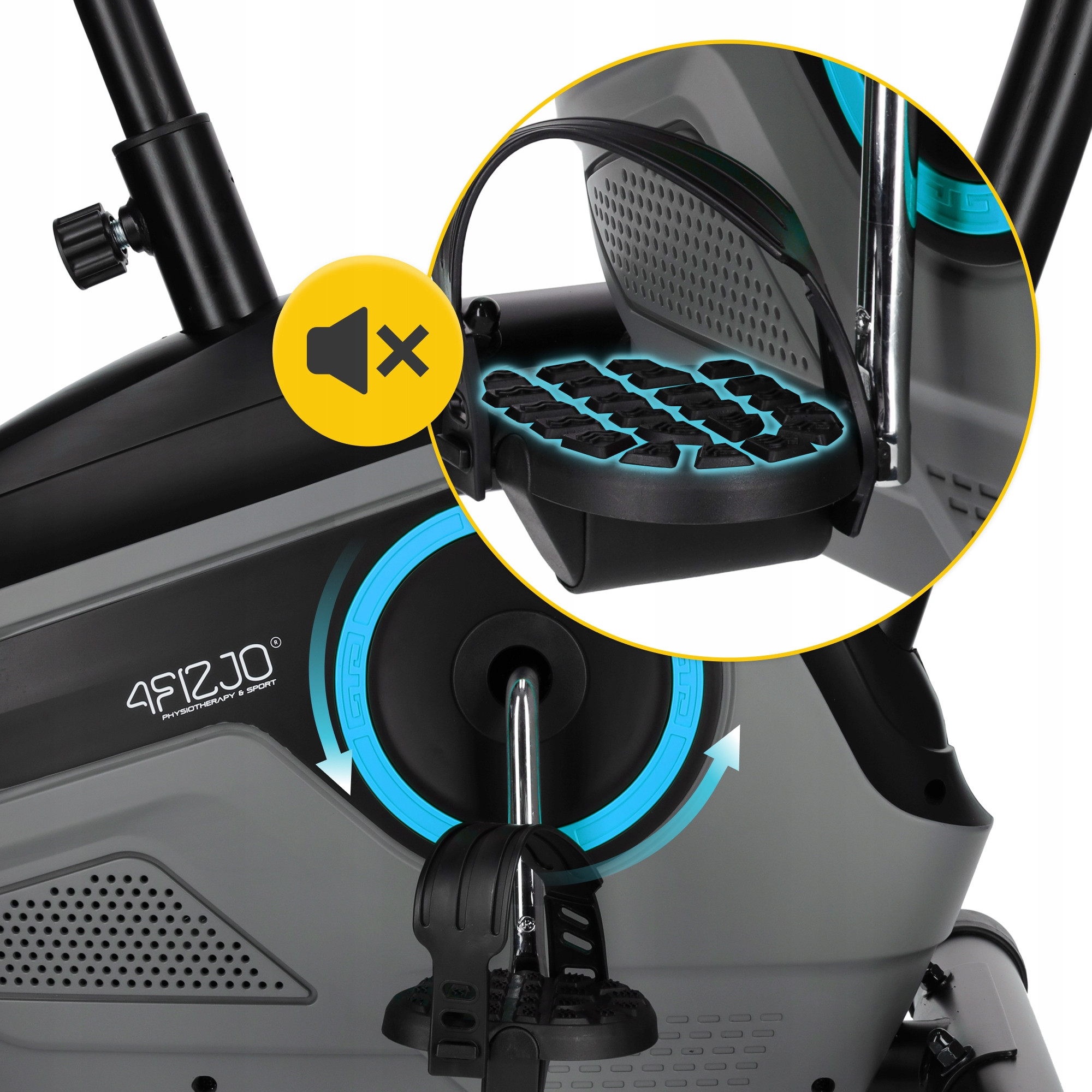 Велотренажер від 4FIZJO обладнаний магнітним приводом, який має безліч переваг. Він безшумний при роботі, надійний та не потребує підключення до електромережі. Тож при тренуваннях у вас буде повна свобода, без прив'язки до розетки. Водночас користувачеві доступно 8 рівнів навантаження, які легко перемикаються ручним регулятором. Завдяки цьому тренажер дружній до початківців та здивує більш досвідчених спортсменів. За контроль всіх показників тренування відповідає сучасний комп'ютер, який в режимі реального часу відстежує: пульс, час, спалені калорії, швидкість, пройдену відстань, а також має функцію одометра. Тому стежити за своїм прогресом і досягати спортивних цілей стає ще легше.