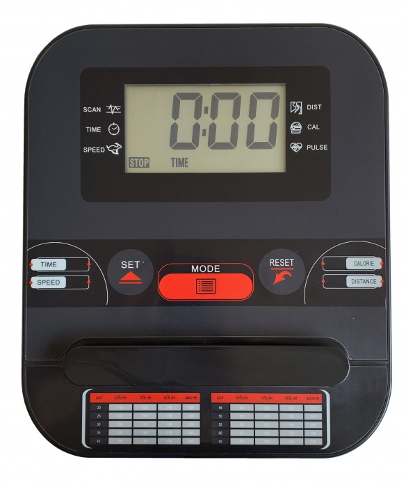 Відображає час, відстань, швидкість, RPM, калорії, пульс |