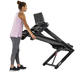 Компактність і зручність зберігання: У складеному стані доріжка має розміри 87 x 74 x 139 см, що дозволяє легко зберігати її навіть у невеликому приміщенні. Також вона оснащена транспортними роликами для зручного переміщення.