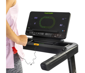 Додаткові опції: До доріжки можна підключити Bluetooth USB, використовувати зарядний пристрій, а також скористатися різними додатками для тренувань (Android/iOS). Додатково передбачені тримач для пляшки та нагрудний ремінь для вимірювання пульсу (опційно).