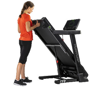 Компактність: У складеному вигляді тренажер має розміри 102 x 83 x 155 см, що робить його зручним для зберігання навіть у невеликих приміщеннях. Транспортні ролики спрощують переміщення доріжки.