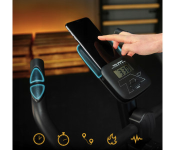 Для максимального комфорту під час тренувань Rize оснащений практичним тримачем для пляшки, щоб ви могли легко підтримувати водний баланс, не перериваючи заняття. Багатофункціональний дисплей відображає всі необхідні параметри: час, швидкість, пройдену дистанцію, калорії та пульс, що вимірюється завдяки сенсорам на кермі.