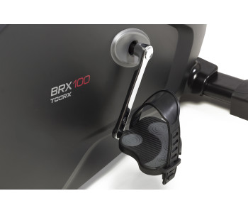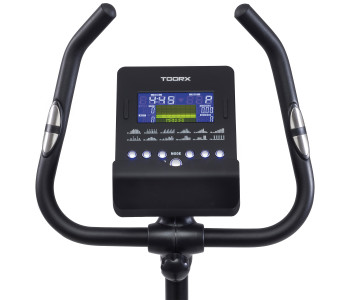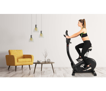 Велотренажер Toorx Upright Bike BRX 100 (BRX-100) із преміальної лінійки Chrono Line від італійського виробника Garlando S.p.A. призначений для повноцінного кардіотренування в домашніх умовах. Тренажер має 16 рівнів навантаження, що регулюються за допомогою сучасного комп'ютера. 12-кілограмовий маховик створює відмінну плавність ходу, знижуючи навантаження на суглоби та мінімізуючи ризик отримання травми в процесі занять. Велотренажер розрахований на вагу до 150 кг і підійде для користувачів зростом до 2 м. Вбудований приймач для бездротового датчика вимірювання пульсу буде доречним під час тренування по одній з чотирьох пульсозалежних програм. Консоль тренажера має підставку для смартфона/планшета. Сидіння велотренажера регулюється по висоті та в горизонтальній площині для індивідуального настроювання, а транспортувальні ролики в передній частині тренажера дозволяють переміщати його по кімнаті.