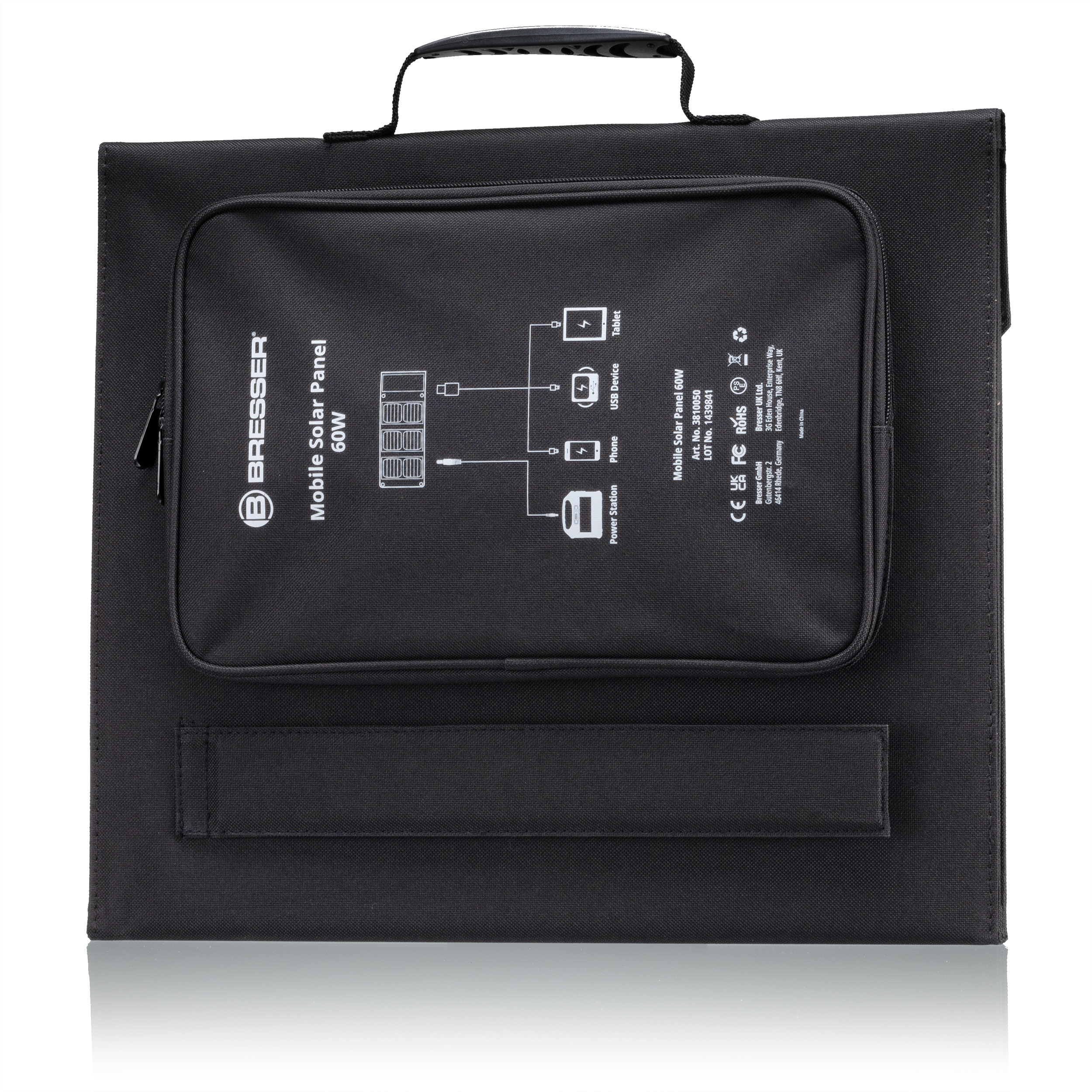 - Зарядний пристрій Bresser Mobile Solar Charger 60 Watt підходить для заряджання великих електростанцій, наприкладі електростанцій Bresser 100 Watt (арт. 3810000) та електростанція Bresser 500 Watt (арт. 3810020), а також електростанції інших виробників з відповідними параметрами підключення.