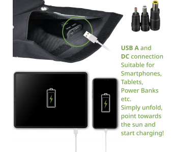 - Ідеально підходить для всіх видів активного відпочинку, просто розгорніть, спрямуйте на сонце, і зарядка почнеться.