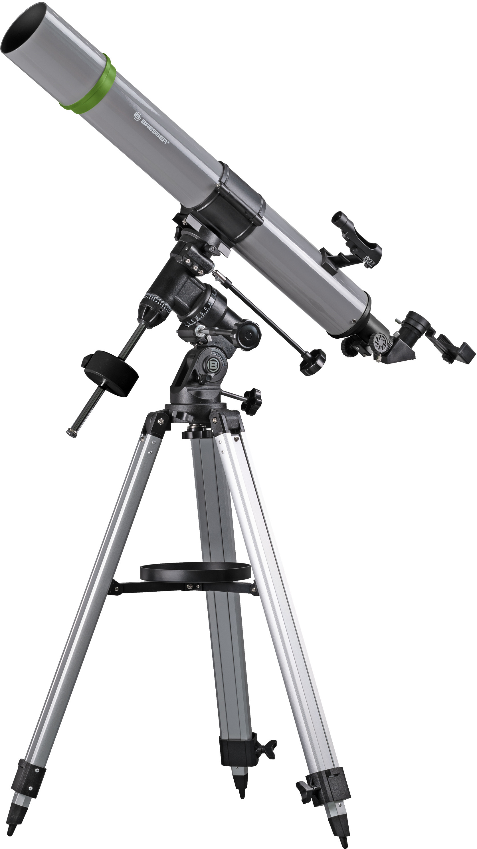 Телескоп Bresser Space Explorer 90/900 EQ3 з місячним фільтром і адаптером для смартфона (9621801) призначений для початківців й досвідчених користувачів. Завдяки діаметру лінзи 90 мм, дана модель збирає в 165 разів більше світла, ніж людське око, а фокусна відстань 900 мм робить більш видимими об'єкти далекого космосу. Простий спосіб орієнтування по зоряному небі забезпечується видошукачем Red Dot. Завдяки монтуванню EQ3 легко компенсувати рух землі, щоб об'єкт спостереження завжди залишається в полі зору. Штатив телескопа обладнаний предметним столиком для окулярів та лінз. Місячний фільтр для зменшення блиску й збільшення контрастності, просто вкрутіть його в задню частину одного з окулярів, щоб ви могли насолоджуватися неймовірно чітким зображенням. Також рефракторний телескоп підійде для наземних спостережень за віддаленими об'єктами. Відправляйтеся в подорож відкриттів з телескопом BRESSER 90/900 Space Explorer!