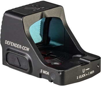 Приціл коліматорний Vortex Defender-CCW 3 MOA Red Dot (DFCCW-MRD3) спеціально розроблено для сучасного щоденного носіння. Модель пропонує об'єктив розміру, що лідирує у своєму класі, а також відмінні оптичні показники. Автоувімкнення прицільної точки при виявленому руху зброї для швидкого реагування без зайвих рухів (дану функцію можна примусово вимкнути). Регулювання яскравості дозволяє знайти ідеальне налаштування для вашого ока, а функція блокування кнопок запобігає випадковим змінам під час носіння. Приціл сумісний з приладами нічного бачення, що розширює спектр його застосування. Тривалість роботи батарейки до 9500 годин та швидка заміна без необхідності переналаштування оптики.
