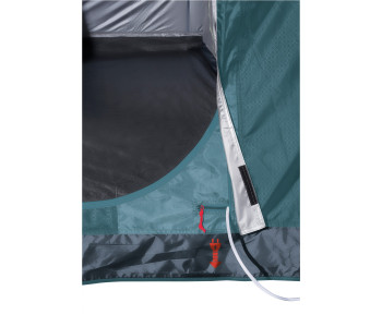 Намет чотиримісний Ferrino Fenix 4 Petrol (91192MBB) - сімейний тунельний намет із трьома входами, просторим тамбуром із вшитою підлогою та спальнею зі знімною перегородкою. Москітні сітки на вхідних дверях забезпечують захист від настирливих комах. Система вентиляції Air Ventilation System забезпечує постійну циркуляцію повітря, а також позбавляє утворенню конденсату. Фронтальні вікна та панорамне бічне вікно наповнюють внутрішній простір світлом. Висота тамбура 180 см дозволяє стояти на повний зріст.