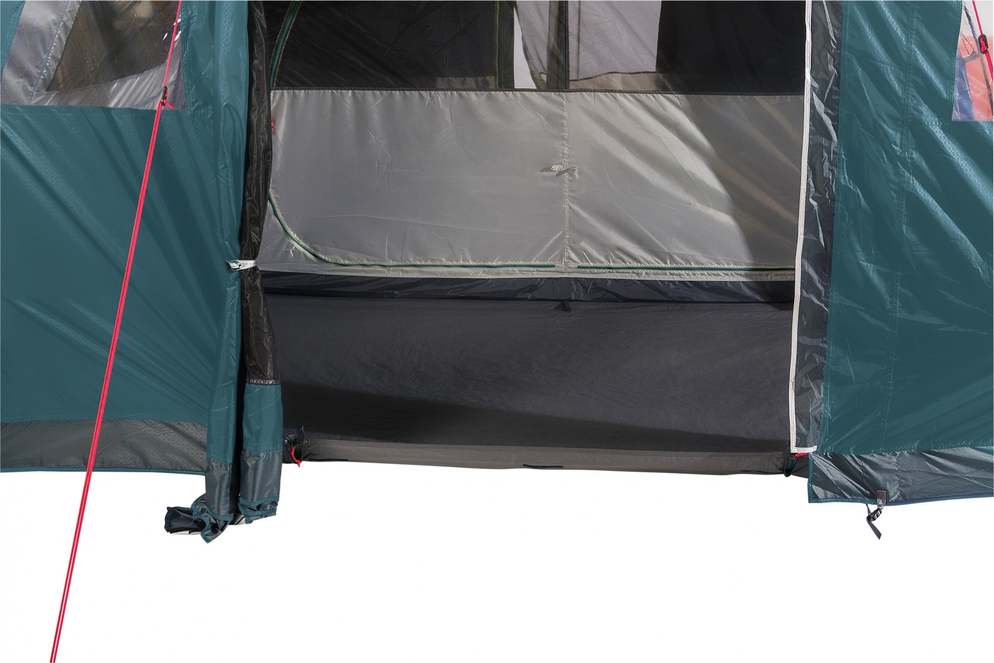 Намет шестимісний Ferrino Fenix 6 Petrol (91194MBB) - сімейний тунельний намет із трьома входами, просторим тамбуром із вшитою підлогою та спальнею зі знімною перегородкою. Москітні сітки на вхідних дверях забезпечують захист від настирливих комах. Система вентиляції Air Ventilation System забезпечує постійну циркуляцію повітря, а також позбавляє утворенню конденсату. Фронтальні вікна та панорамне бічне вікно наповнюють внутрішній простір світлом. Висота тамбура 210 см дозволяє стояти на повний зріст.