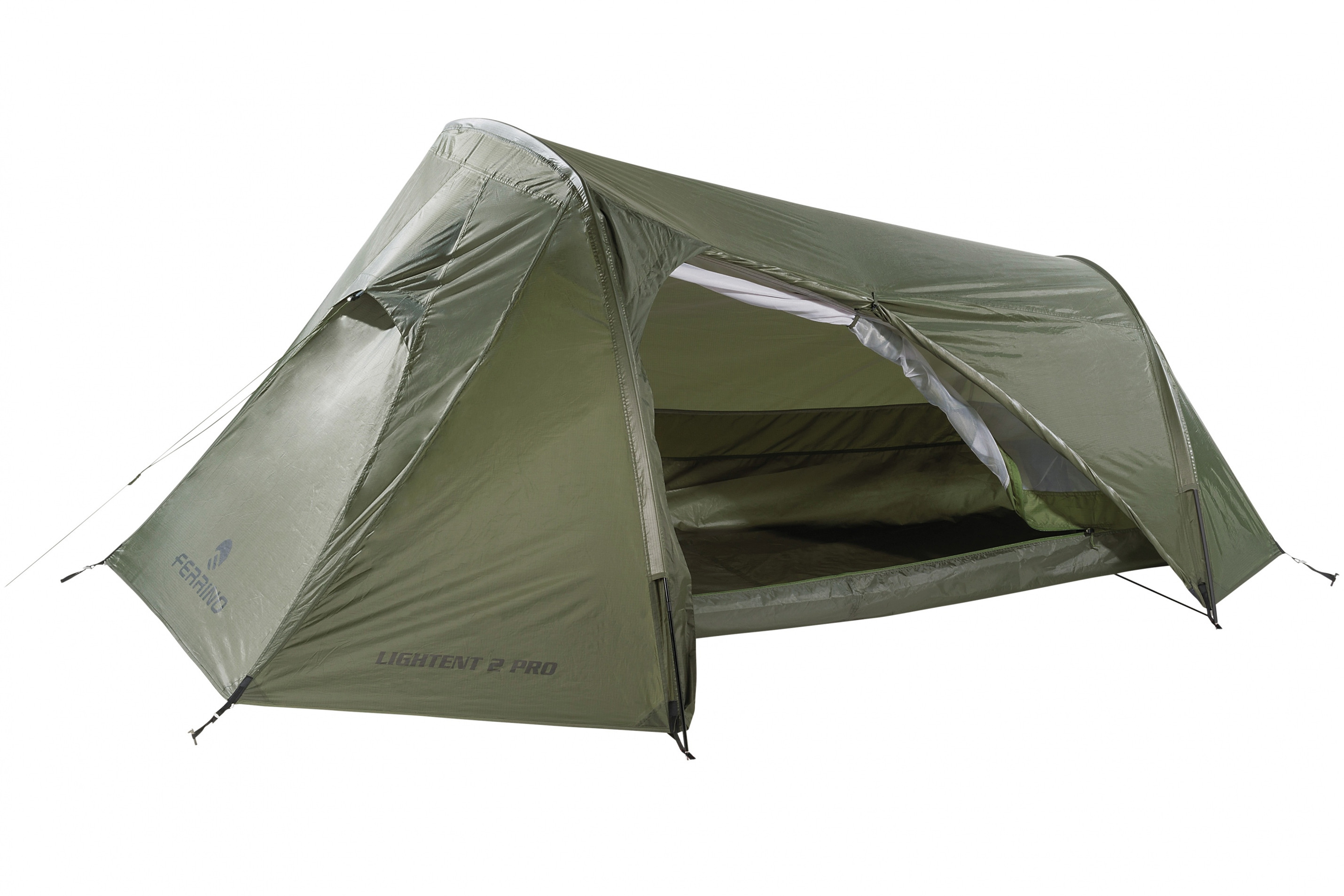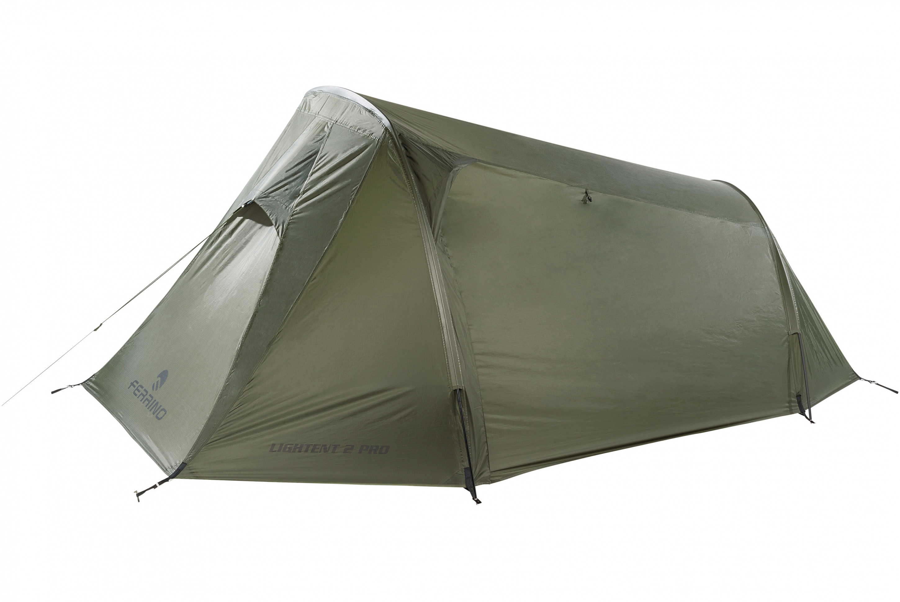Намет двомісний Ferrino Lightent 2 Pro Olive Green (92171LOOFR) відноситься до серії ультралегких наметів Ferrino Light Line. Дана модель має підвищену до 8000 мм вод. ст. водонепроникність дна та підійде не тільки для літніх, а й для весняно-осінніх походів, коли можливе випадіння великої кількості опадів. Внутрішній намет повністю складається з москітної сітки і попередньо прикріплений до зовнішнього тенту для швидкості установки. Тунельна конструкція забезпечує мінімальну вагу при більшому об'ємі внутрішнього простору, чому сприяють попередньо вигнуті алюмінієві дуги. Встановлення намету займає мало часу та потребує мінімум місця. Не дивлячись на те, що намет двошаровий, його вага складає всього 2,1 кг. Зовнішній тент має водозахист 3000 мм вод. ст., що є цілком достатнім для збереження намету сухим всередині під час дощу. Ефективна система вентиляції Camera Air доповнена бічним вентиляційним вікном, що допоможе уникнути утворення конденсату.