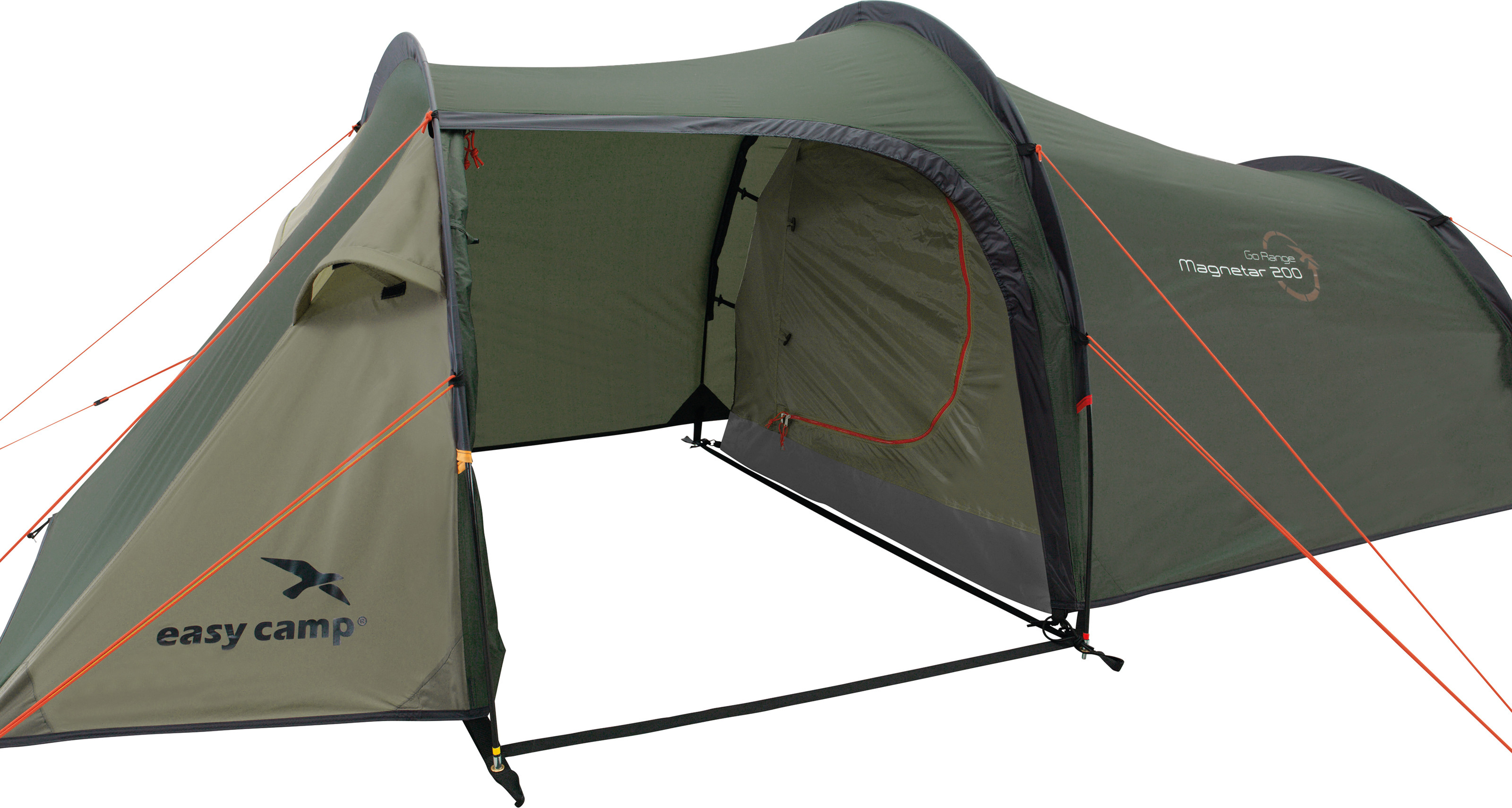 Easy Camp Magnetar 200 Rustic Green (120414) - легкий двомісний тунельний намет із боковим входом. Місткий тамбур призначений для зберігання спорядження та приготування їжі в похідних умовах. Затемнена спальня розрахована на двох людей гарантує Вам комфортний сон у будь-який час дня та ночі. Регульовані вентиляційні вікна у фронтальній та тильній частині намету забезпечують приплив свіжого повітря, позбавляючи утворення конденсату всередині. Для Вашої зручності є точка для кріплення ліхтаря та кишені для зберігання дрібних речей. Намет двомісний Easy Camp Magnetar 200 Rustic Green (120414) стане ідеальним вибором для піших походів, а також для вело- і мототуристів.