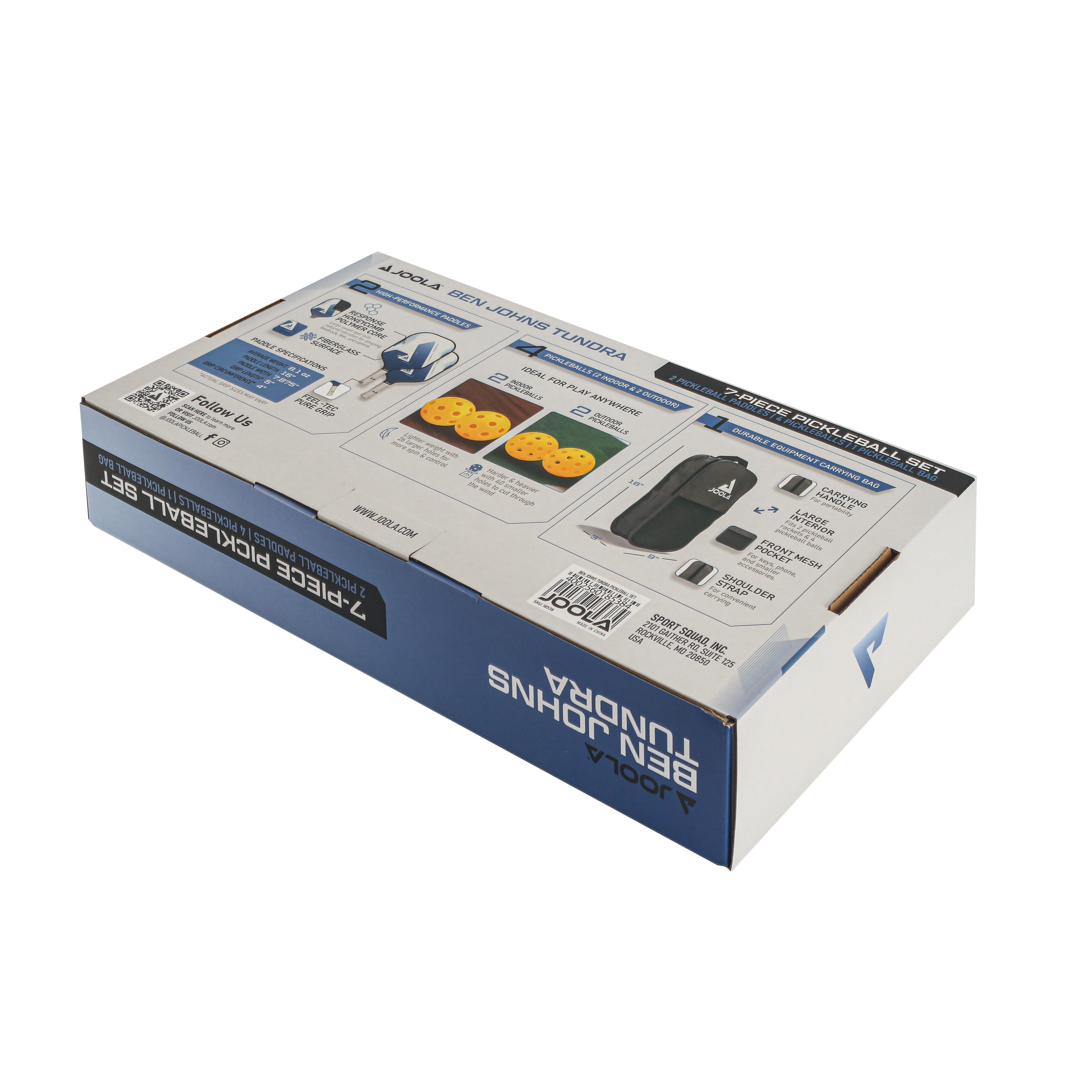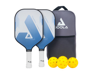У комплект постачання входять: 2 ракетки для піклболу Joola Tundra, 2 м'ячі для приміщення та 2 м’ячі для гри на відкритому повітрі, сумка для зберігання