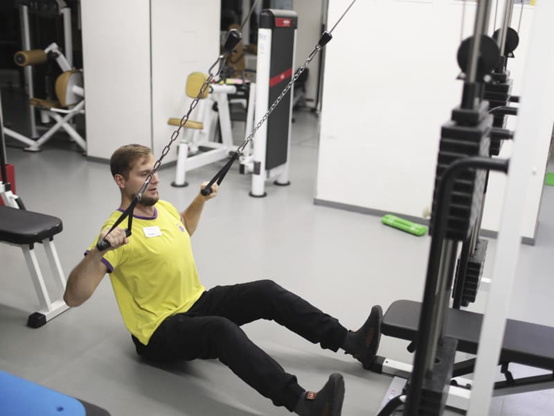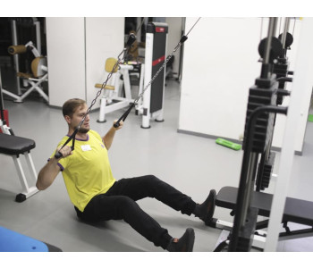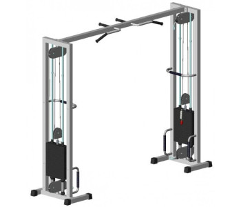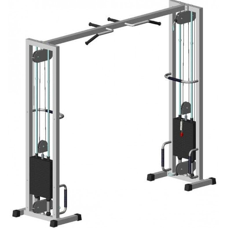 - Тренажер-кросовер з подвійним блоком – дозволяє виконувати одночасні рухи руками або ногами з двох боків.