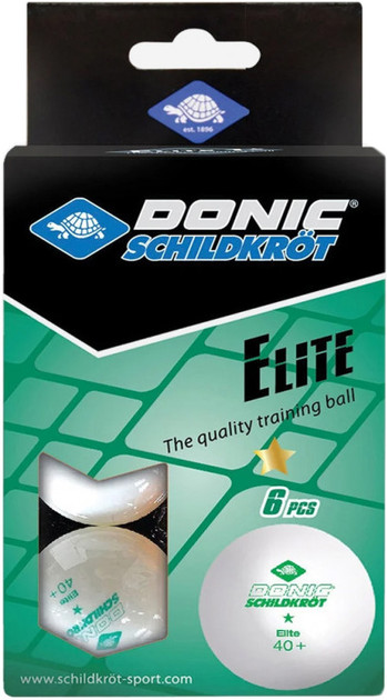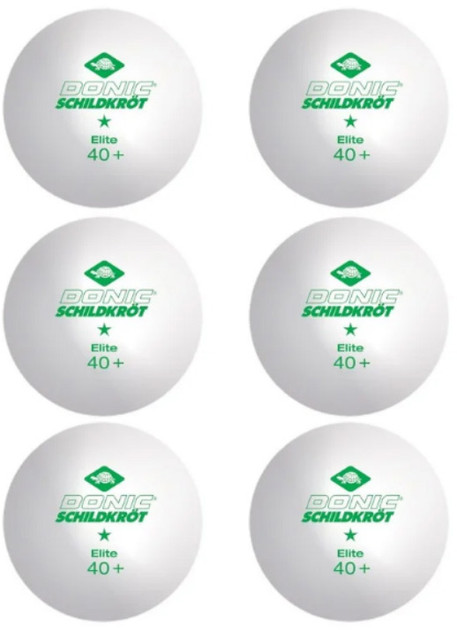 Пластикові м'ячі для настільного тенісу Donic Elite 1 зірка призначені для ігор любительського і середнього рівнів. Пластикові кульки є екологічно чистими з порівнянними ігровими якостями. З 2014 року класичні м'ячі з целулоїду замінюються новими пластиковими м'ячами у всіх турнірах ITTF, а потім поступово в більшості ліг високого рівня. Маркування на упаковці "40+" є підтвердження того, що м'ячі вироблені саме з пластику. Перш, ніж вийти за межі фабрики, м'ячі проходять безліч тестів.