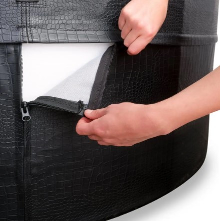 СПА Басейн EXIT Premium обов'язково сподобається і захопить з першого погляду своїми контрастними кольорами - чорний з візерунком текстури шкіри зовні і білий - всередині. Цей басейн з джакузі має пінопластову стінку товщиною 8 сантиметрів, тому він стійкий і зводить до мінімуму втрати тепла. Крім того, поролонова основа забезпечує відмінний комфорт для сидіння. А якщо ви не хочете користуватися джакузі якийсь час? Надувна кришка з ізолюючим чохол-накриття з запобіжним замком дозволяє легко закрити гідромасажну ванну і зберегти воду теплою.