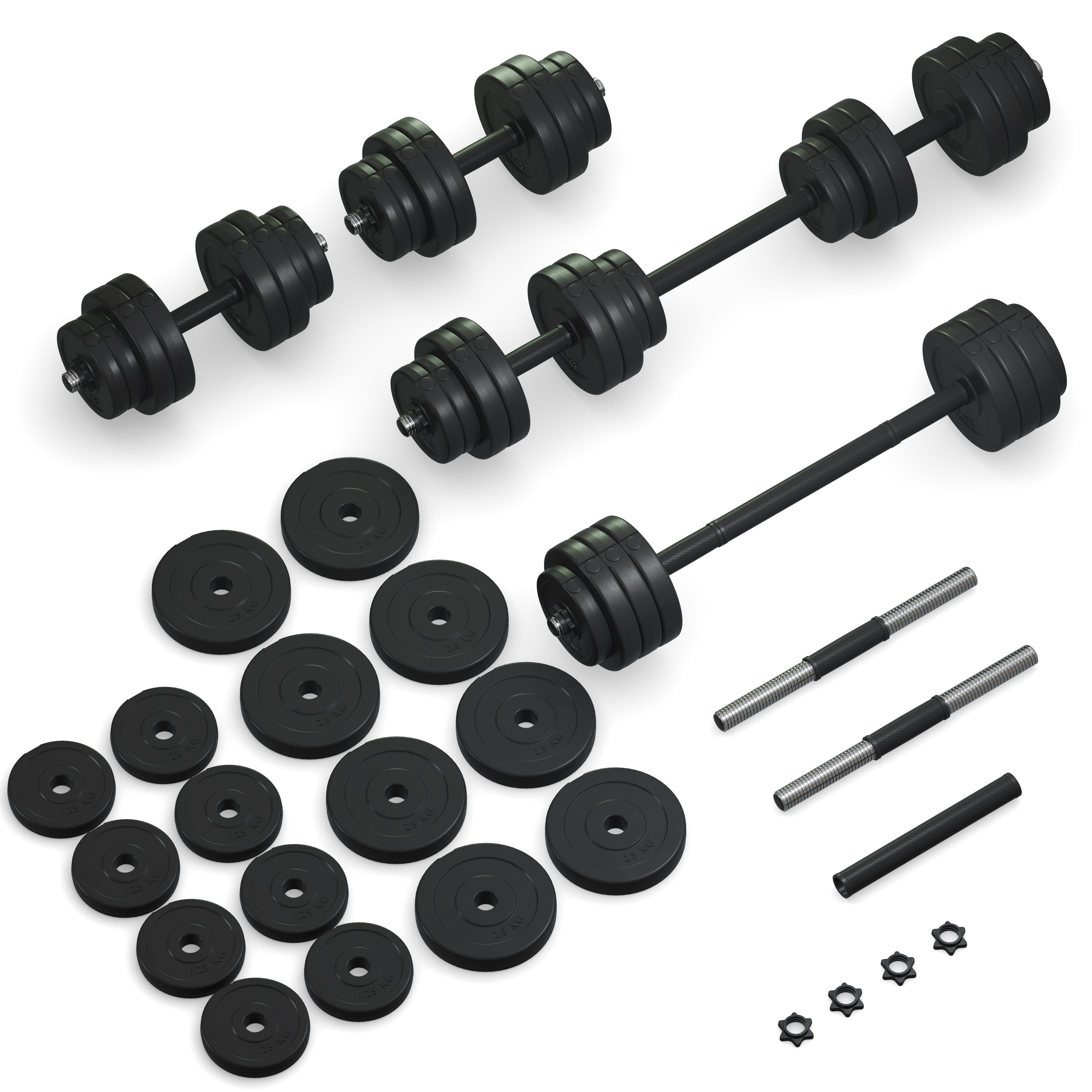 Універсальність 2в1: Відкрийте для себе унікальну можливість використовувати гантелі як звичайні гантелі для ізоляційних вправ, або з'єднайте їх і використовуйте як штангу для комплексних тренувань.