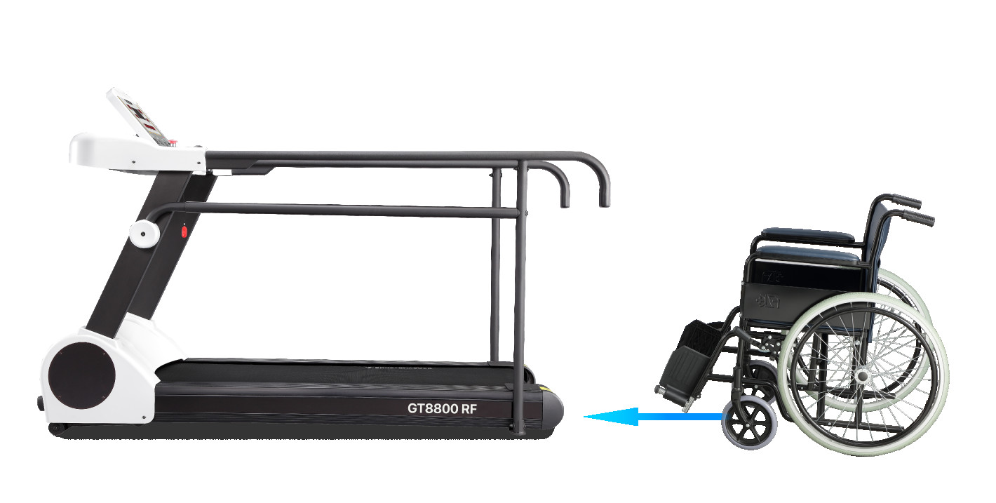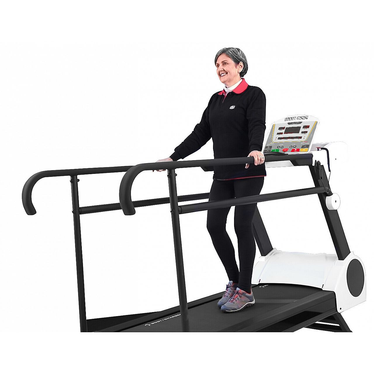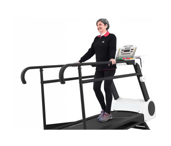 Тренувальна бігова доріжка з поручнями, призначена для ходьби і бігу. Мінімальна стартова швидкість 0,16 км/год дозволяє людям похилого віку та людям, які отримали травми, безпечно розпочати діяльність.