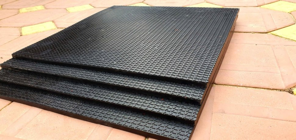 Комплект захисного покриття з литої гуми під лаву, штангу, гантелі, 1х1 метр.
