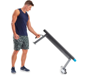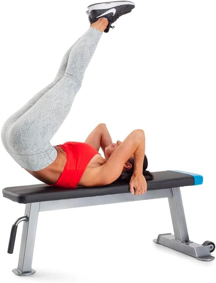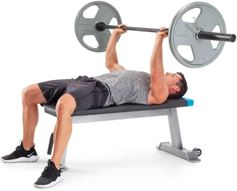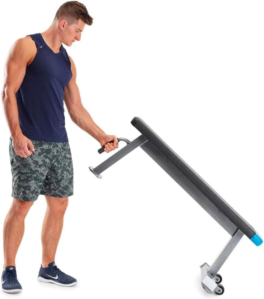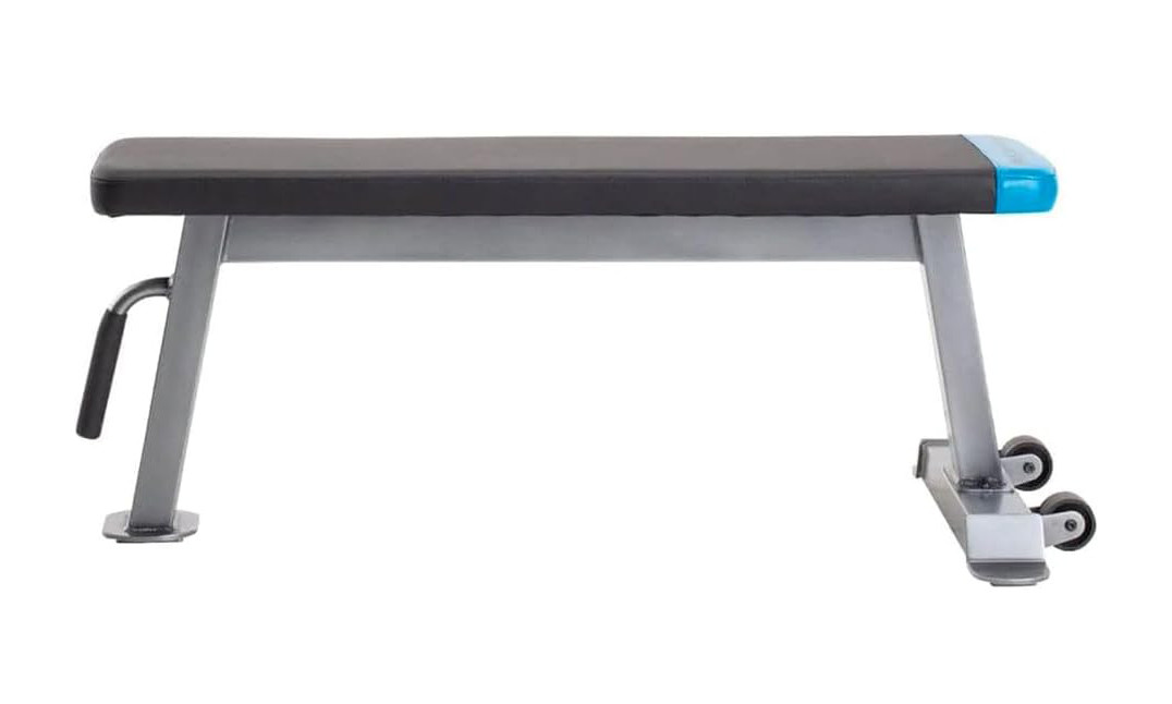 Прошите сидіння довговічніше, ніж традиційний вініл, що забезпечує легкість в очищенні поверхні, яка захищає від передчасного зносу. Нековзні гумові ніжки стабілізують ваше тренування, тому вам не доведеться турбуватися про рівновагу, коли ви тримаєте вагу над головою. Коли вам необхідно перемістити лавку, скористайтесь вбудованими транспортними колесами та зручною ручкою.