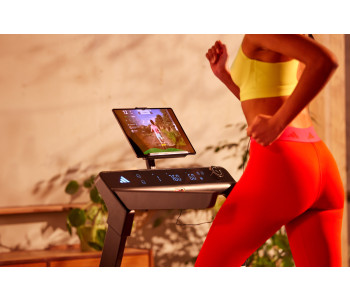 Контролюйте ефективність за допомогою інтуїтивно зрозумілого інтерфейсу консолі T-24c. Плавно регулюйте швидкість і нахил на ходу, в той час як світлодіодний дисплей відображає показники ефективності в реальному часі, дозволяючи вам тренуватись сильніше та бігати розумніше. Тримайте свої розваги на передньому плані за допомогою вбудованого тримача, що обертається, для пристроїв, який забезпечує ідеальний кут огляду.