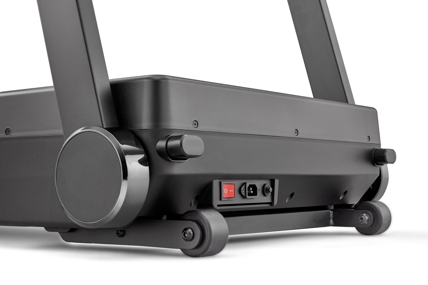 Завдяки м'якій біговій деці з амортизаторами T-24c захищає ваші суглоби, поглинаючи удар від кожного руху ногою. Розроблена для тривалої роботи, міцна, але доладна рама може похвалитися максимальним навантаженням користувача вагою до 110 кг. Вбудовані колеса транспортування забезпечують легке переміщення по будинку, а регулювання за рівнем підлоги забезпечує стійкість, створюючи чудову основу для тренувань.