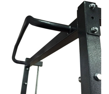 Комплект включає тримачі для дисків різного діаметра (25 мм і 50 мм), що робить її універсальною для будь-яких наборів ваг. Інтегрований турнік на висоті 2075 мм дозволяє додати вправи на підтягування та розвивати верхню частину тіла. Зафіксований гриф дозволяє мінімізувати вірогідність травм, виключаючи неправильні рухи, що можуть призвести до них.