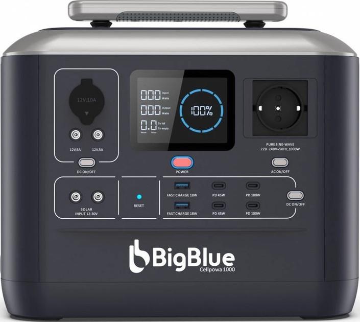 Портативна зарядна станція CP1000 BIG BLUE - це потужне та функціональне джерело живлення, яке забезпечує широкі можливості для заряджання та живлення різних пристроїв.