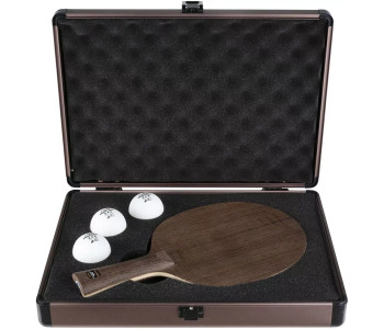 Стильний кейс ретро-стилі в розкішному дерев'яному дизайні захистіть вашу ракетку для настільного тенісу. М'яка внутрішня підкладка забезпечує додаткову амортизацію та захищає вашу ракетку від пилу та бруду коли вона не використовується. Футляр вміщує одну ракетку для настільного тенісу та три м'ячі.
