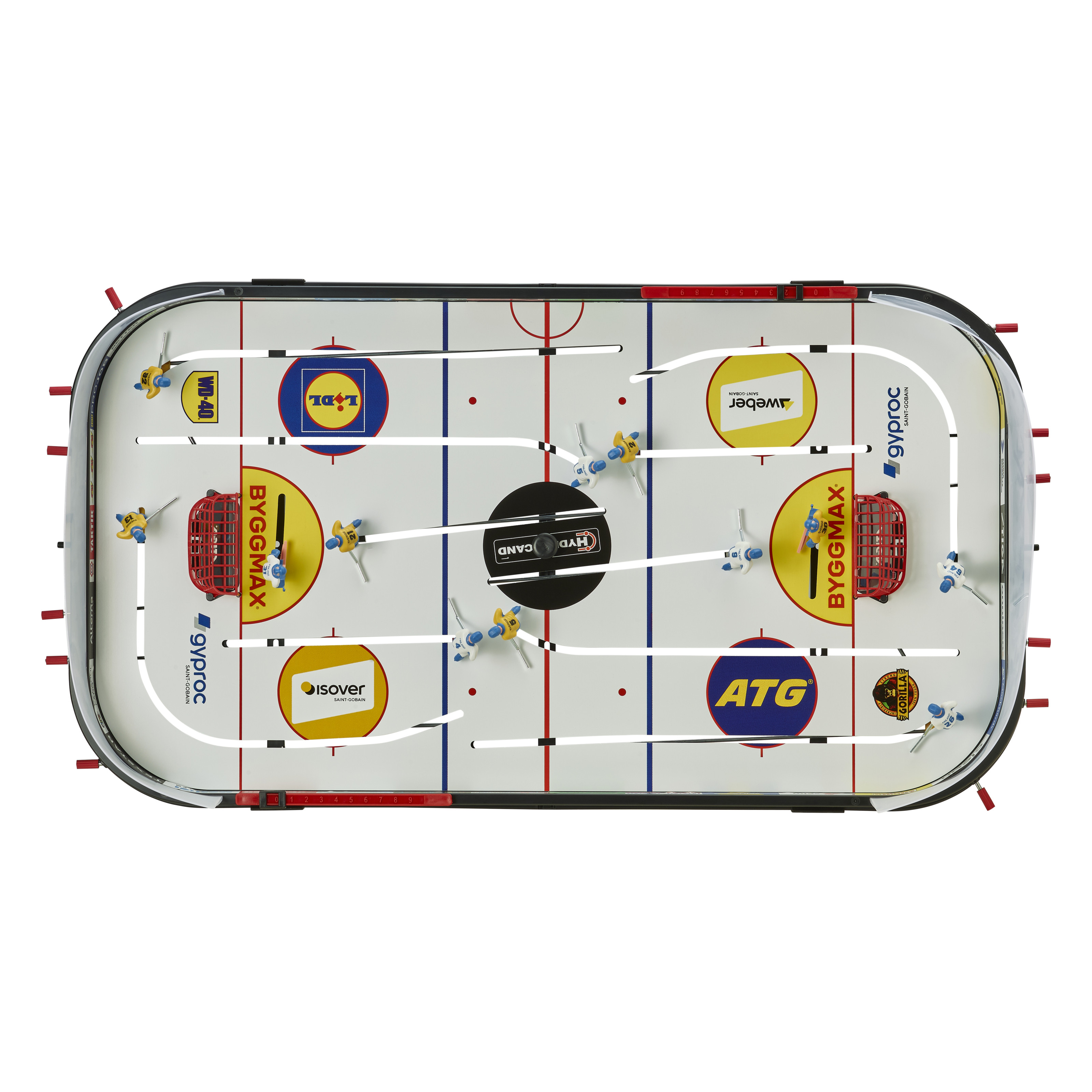 - 4 стійкі ніжки, піднімаючи гру на 4 см, забезпечують легкий доступ і зручність управління стрижнями при грі на столі. Нападники заїжджають за ворота супротивника, що надає грі більше динамічності та реалізму.