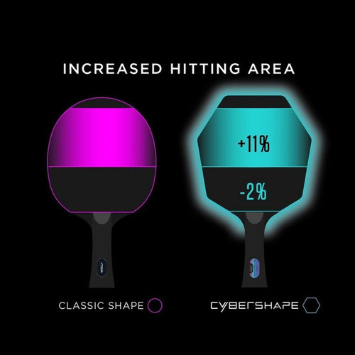 Більша зона удару ближче до поверхні столу - однією з відмінних особливостей конструкції Cybershape є те, що зона удару у поверхні столу збільшена до 6,5 см, у порівнянні з 2,5 см для круглого леза. Це дає вам більше шансів виконати короткі подачі та повернення.