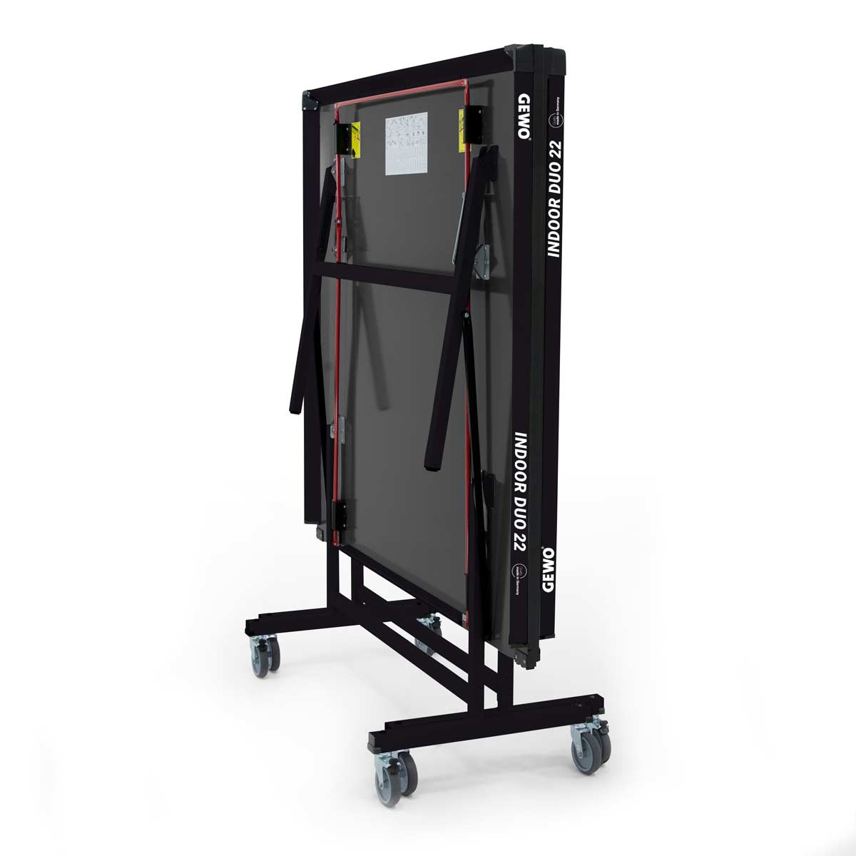 - Легке транспортування Транспортуйте тенісний стіл Gewo Indoor Duo за допомогою 4-х коліщаток (діаметром 100 мм) на кожній половині стола. Всі колеса маневрові з гумовим покриттям і фіксаторами, забезпечують стабільність і покращують мобільність, дозволяючи швидко позиціювати стіл.