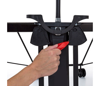 - Чотири здвоєні колеса Ø125 мм, два з яких обертаються на 360°, полегшують переміщення столу в складеному вигляді.