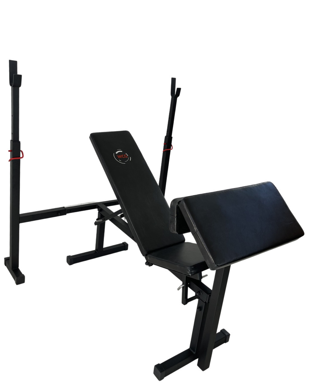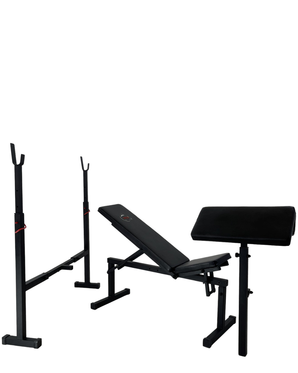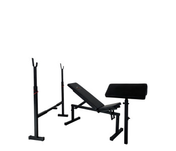 Багатофункціональний тренажерний комплект WCG-003 стане ідеальним вибором для тих, хто тренується зі штангою та прагне повноцінно розвивати м’язи верхньої частини тіла. Міцна конструкція витримує навантаження до 310 кг, що робить лаву надійним партнером навіть для досвідчених спортсменів. У комплект входить: регульована лава, стійки під штангу та професійна приставка Скотта для тренування біцепсів.