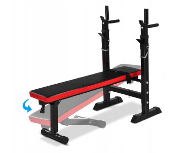 Силовая скамья легко и быстро может быть сложена, тем самым экономя место при ее хранении. Силовая скамья, оснащена брусьями. Основная подставка может регулироваться по высоте от 800 мм до 1000 мм в пяти позициях. Прочное и массивное исполнение Конструкция с четырехугольной усиленной стальной рамой Черные резиновые амортизирующие накладки на основании, обеспечивают устойчивое положение даже на неровных или скользких полах.